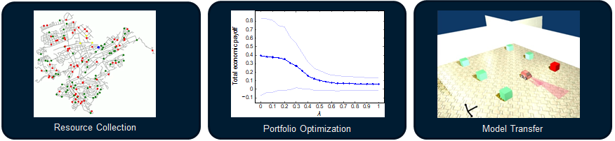 Reinforcement learning can learn powerful policies which enable autonomous systems to dynamically adapt to unknown situations and still perform well in maximizing expected rewards. In our group, we develop novel solutions for spatial mobility tasks such as resource collection and allocation in highly dynamic environments. We aim to make our agents as versatile to adapt to changed conditions and variations of the environment. We further investigate risk and constraints to enforce stable outcomes in financial settings such as portfolio allocation.
